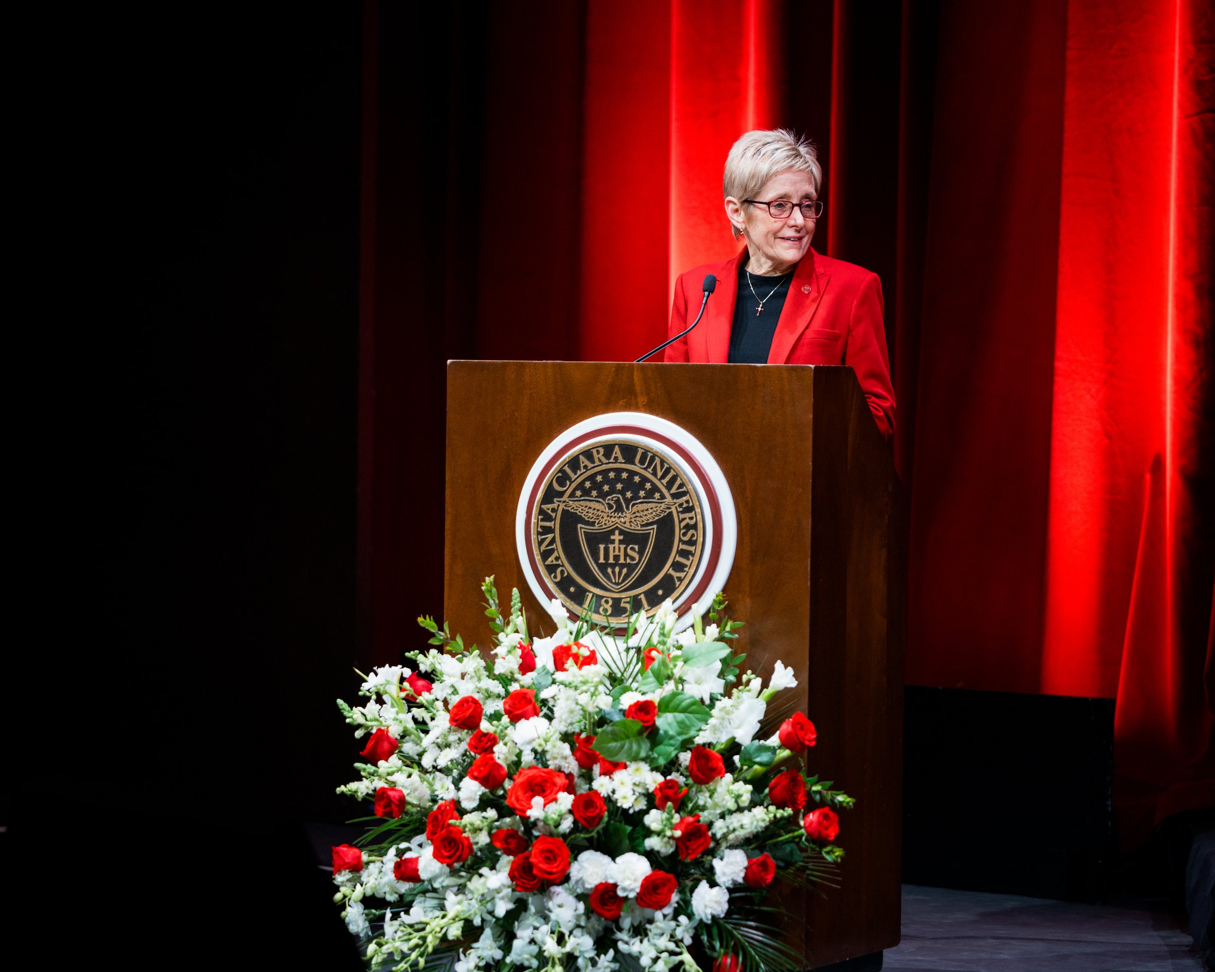 President Julie Sullivan delivers her State of the Union. Photo for The Santa Clara by Miguel Ozuna
