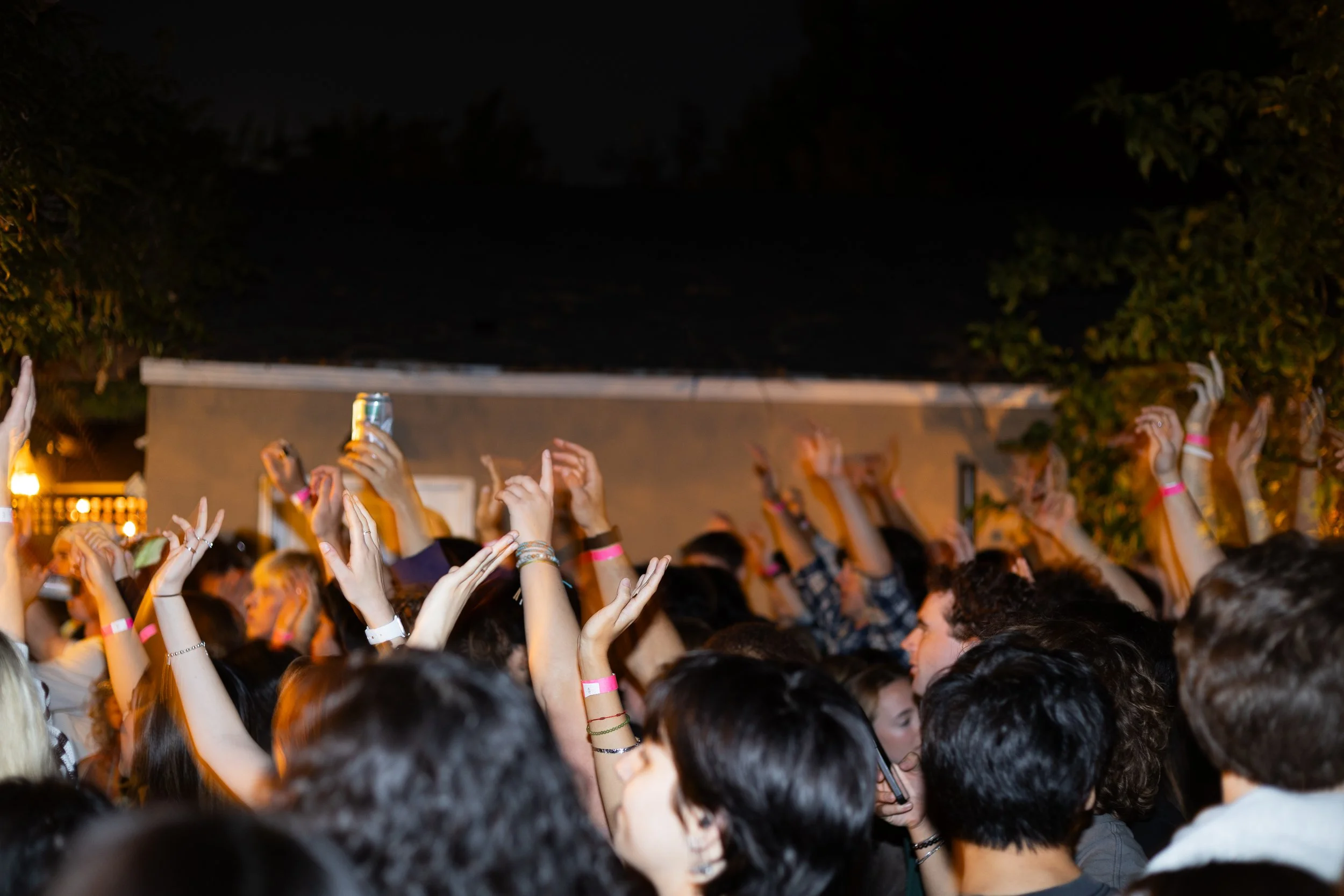 The Bandcamp crowd raises their hands in the air. (Braden Auerbach for The Santa Clara)