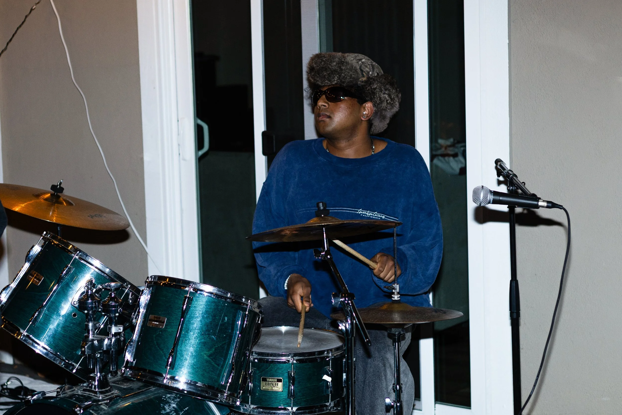 Adi Ranganathan plays the drums during Solace’s set. (Braden Auerbach for The Santa Clara)