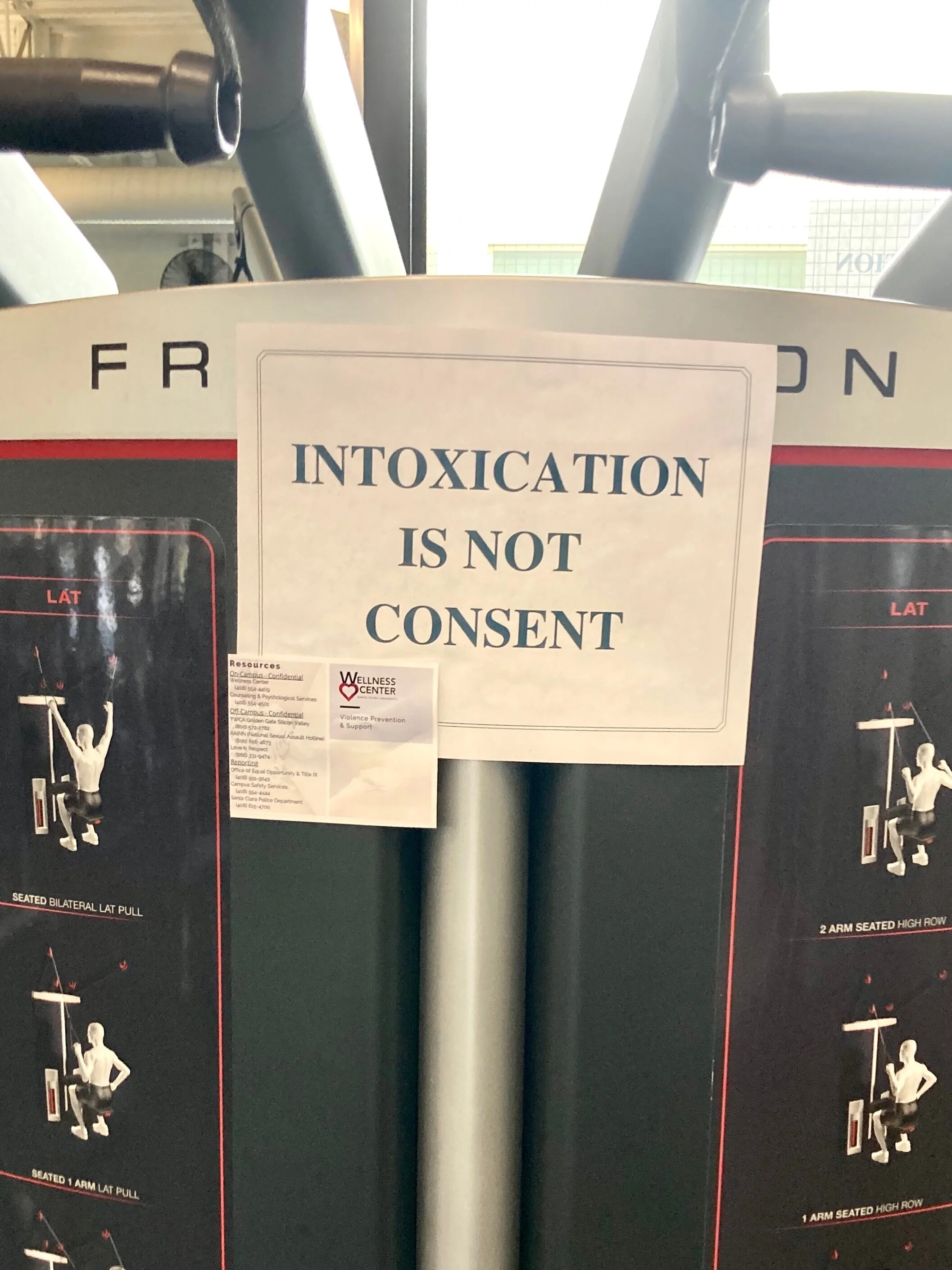 Director of Recreation Janice DeMonsi decided to move the flyers off of Malley’s front door, but leave them in the facility. At press time, flyers are taped onto gym equipment, mirrors, and walls. Worried that they may be triggering for some students, DeMonsi taped a printed list of resources for survivors of sexual assault to many of the flyers.
