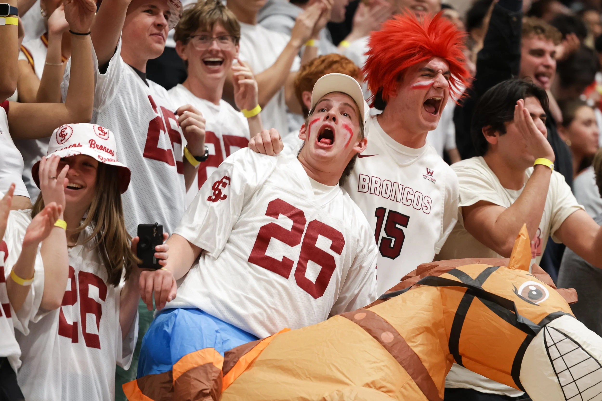 Fans in the student section celebrate a basket by the Broncos. (Nina Glick/The Santa Clara)