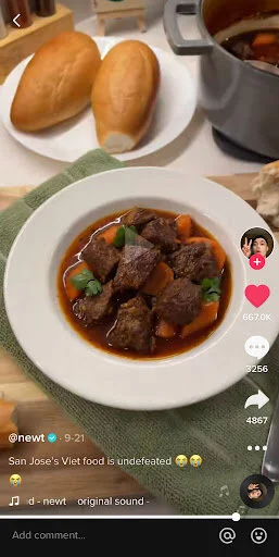 Staying true to his Vietnamese roots, San Jose native Newton Nguyen (simply known as “Newt” on TikTok) creates videos of homemade Vietnamese dishes.