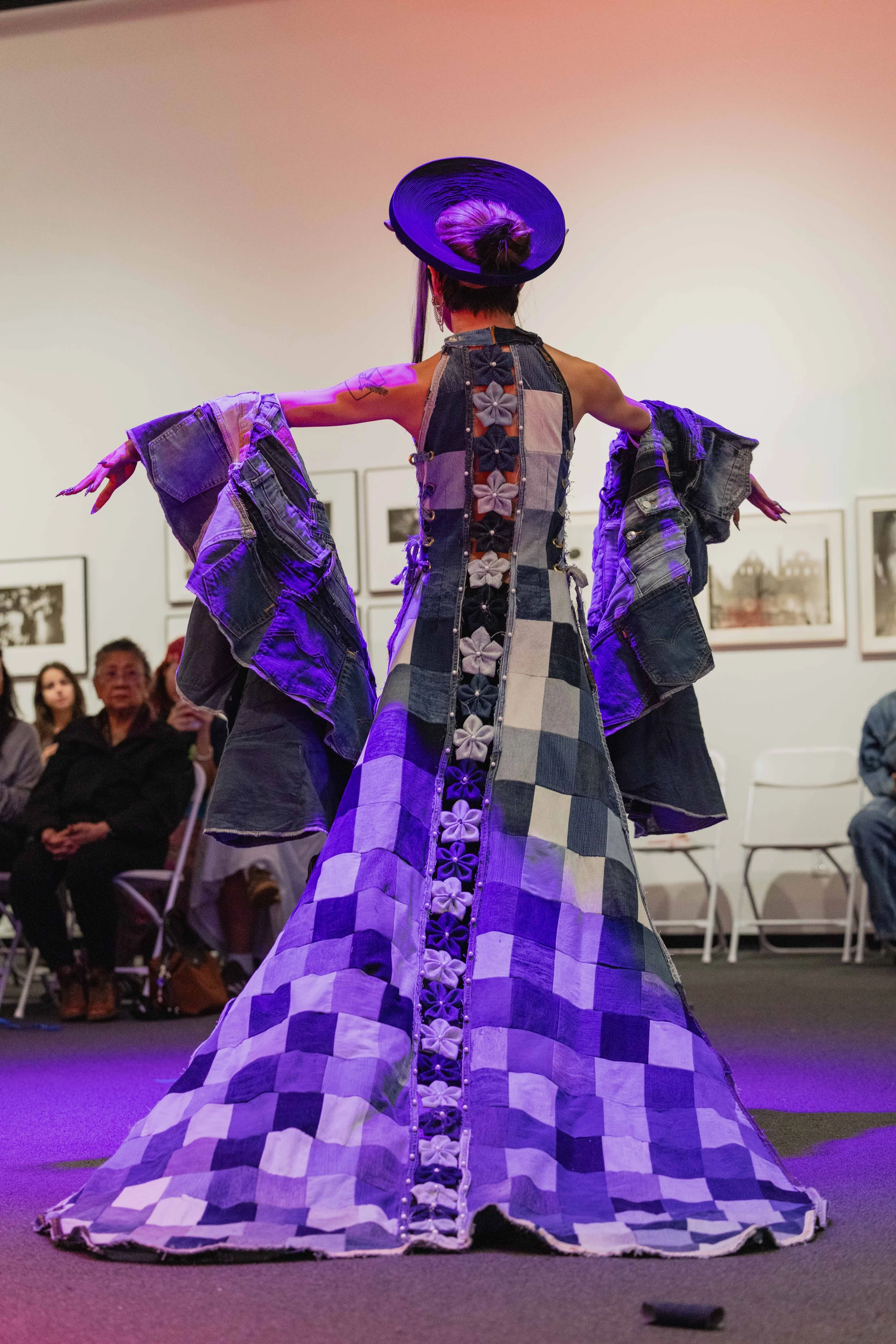 Truong, who began sewing during quarantine by making a bucket hat out of an old T-shirt, has spent the last three years refining her craft. This year she pushed herself, creating three collections. “Princess Treatment” featured two ballgown style princess dresses. “tie dance,” was curated using old ties, and “37th St Denim” got its title from the 37 pairs of jeans used to create the three denim patchwork looks.