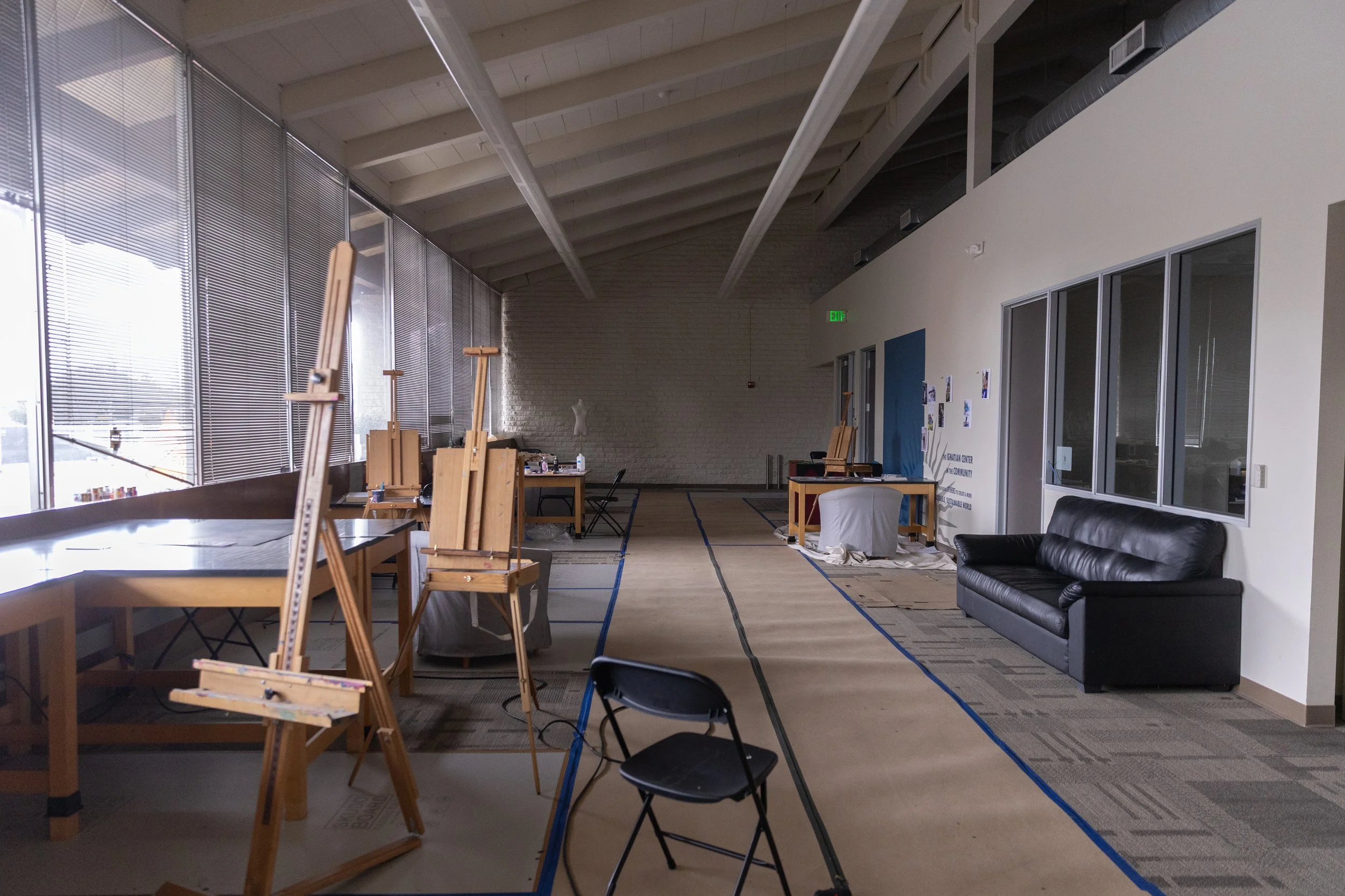 The inside of 990 Benton St. as seen on Wednesday, Feb. 11, 2026. Santa Clara University studio art students, primarily seniors completing their capstone exhibitions, use the space as a studio. (Nina Glick/The Santa Clara)