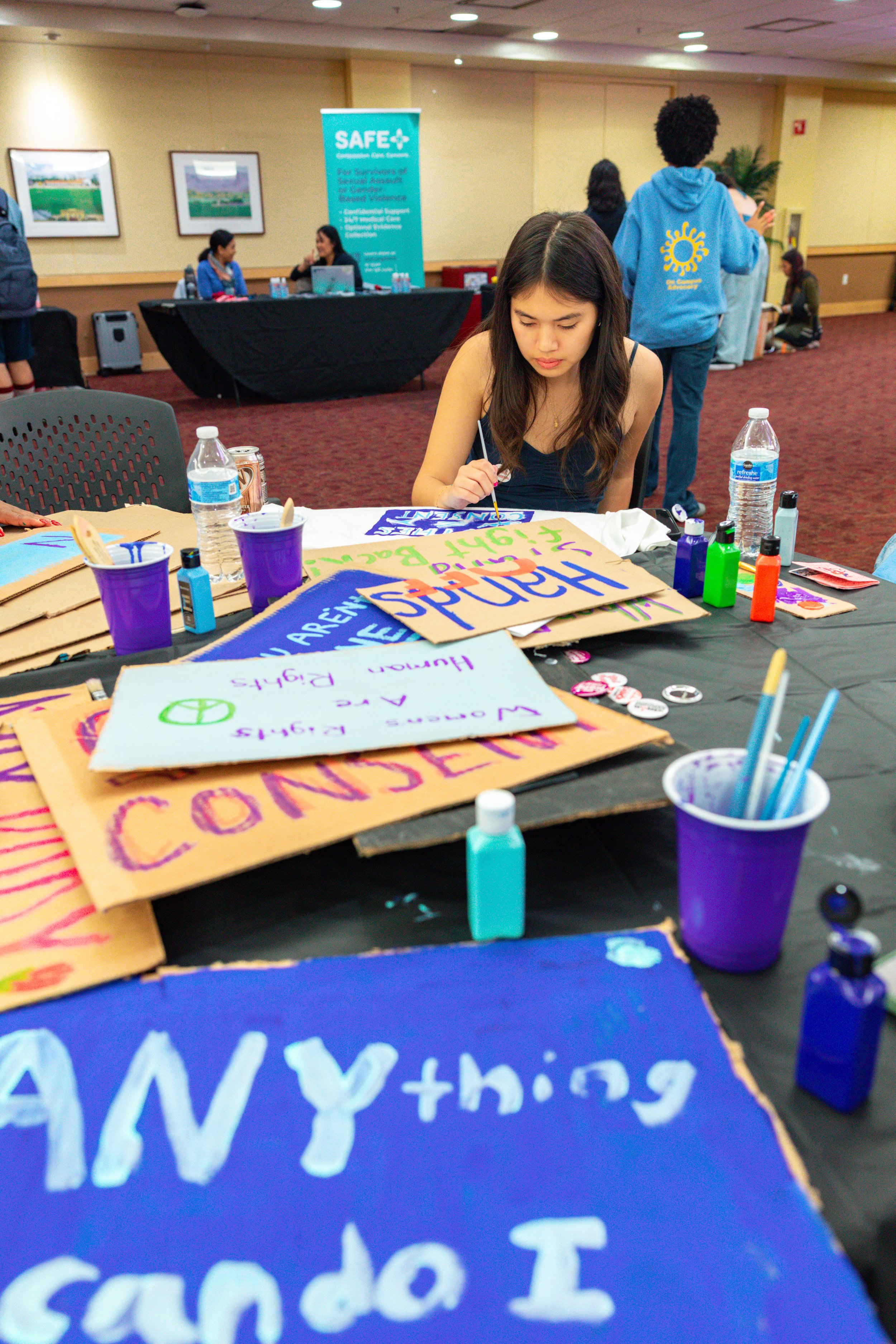 The event ran from noon to 3 p.m. in the California Mission Room, in the basement of Benson Memorial Center. Opening remarks kicked things off, followed by tabling, writing activities and an open mic where attendees could speak. Claire Krebs ’26, the president of Associated Student Government, also spoke. A closing march ran from 2:30-3 p.m.