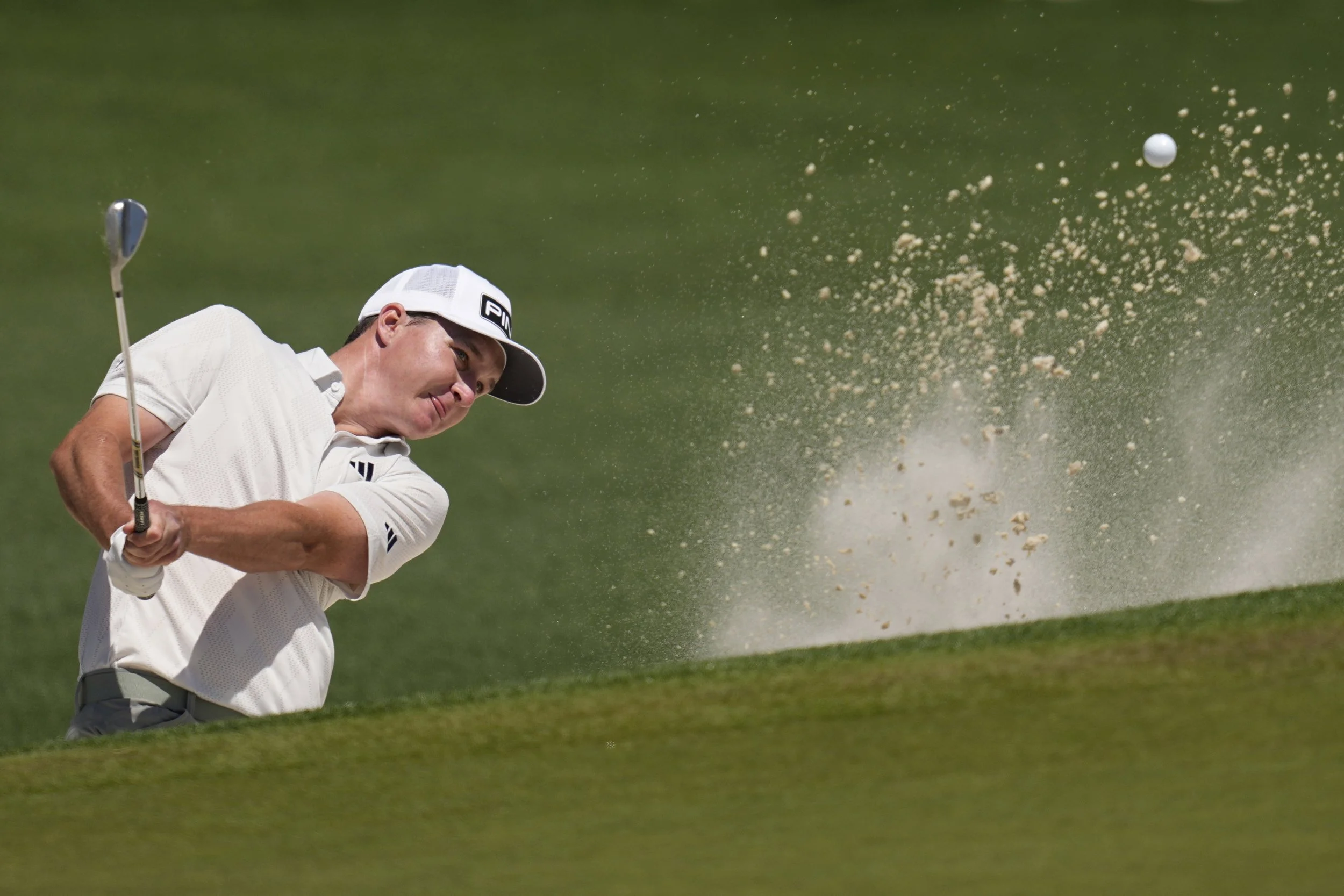 Matt McCarty hits from the bunker on the second hole during the final round at the Masters golf tournament, Sunday, April 13, 2025, in Augusta, Ga. (AP Photo/David J. Phillip)
