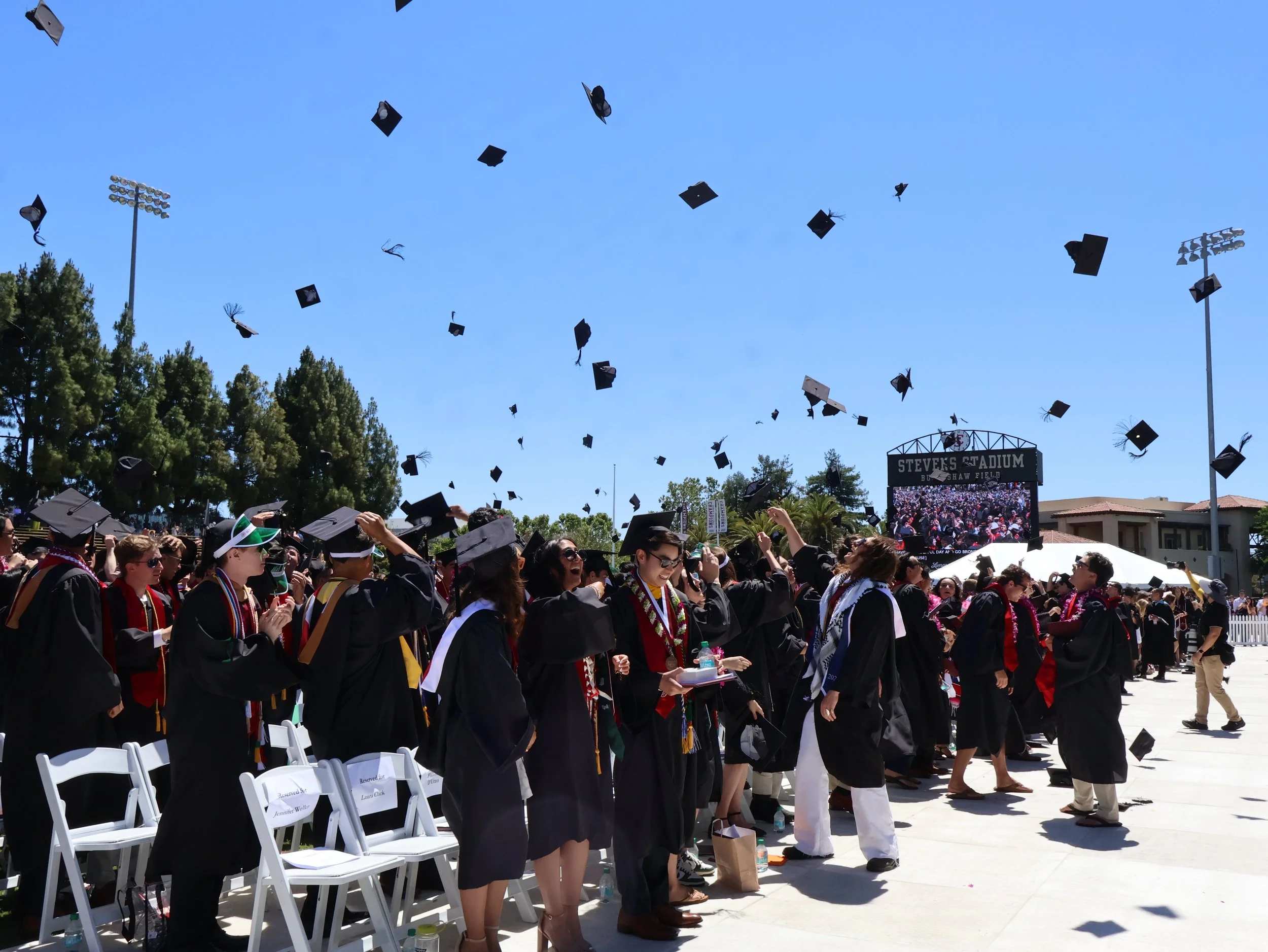 Under the bright California sun, Santa Clara University celebrated the graduating Class of 2024 in the University's 173rd commencement ceremony yesterday. The 1,448 undergraduates gathered with their families, friends, and faculty at the University's Steven's Stadium to mark the culmination of their academic journeys.
