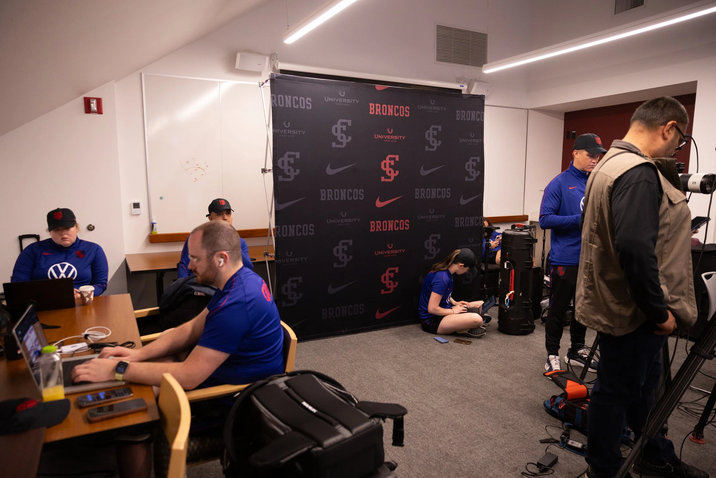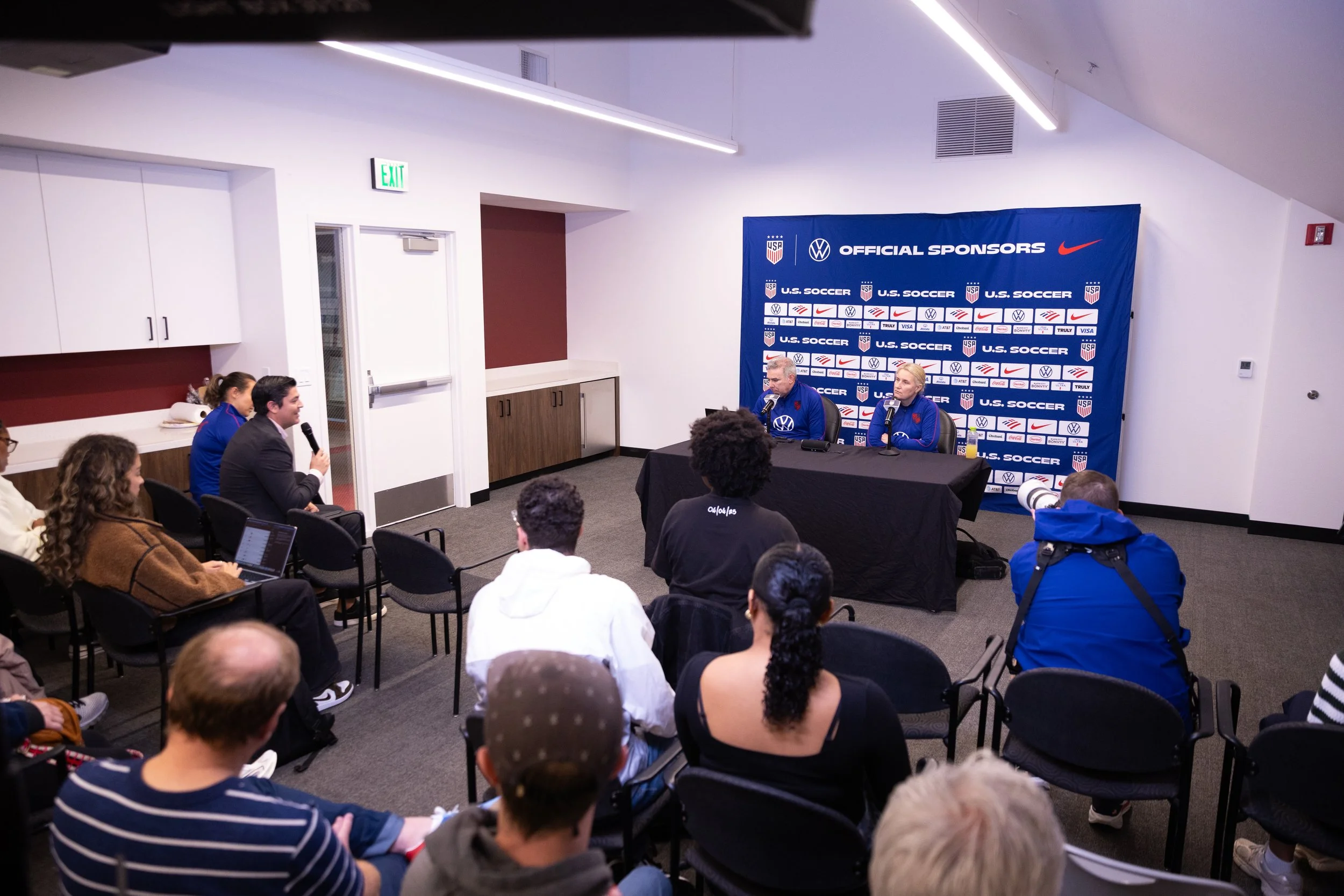 USWNT staff and media during USWNT head coach Emma Hayes’ press conference in the Leavey Center on Friday, April 10, 2026. (Nina Glick/The Santa Clara)