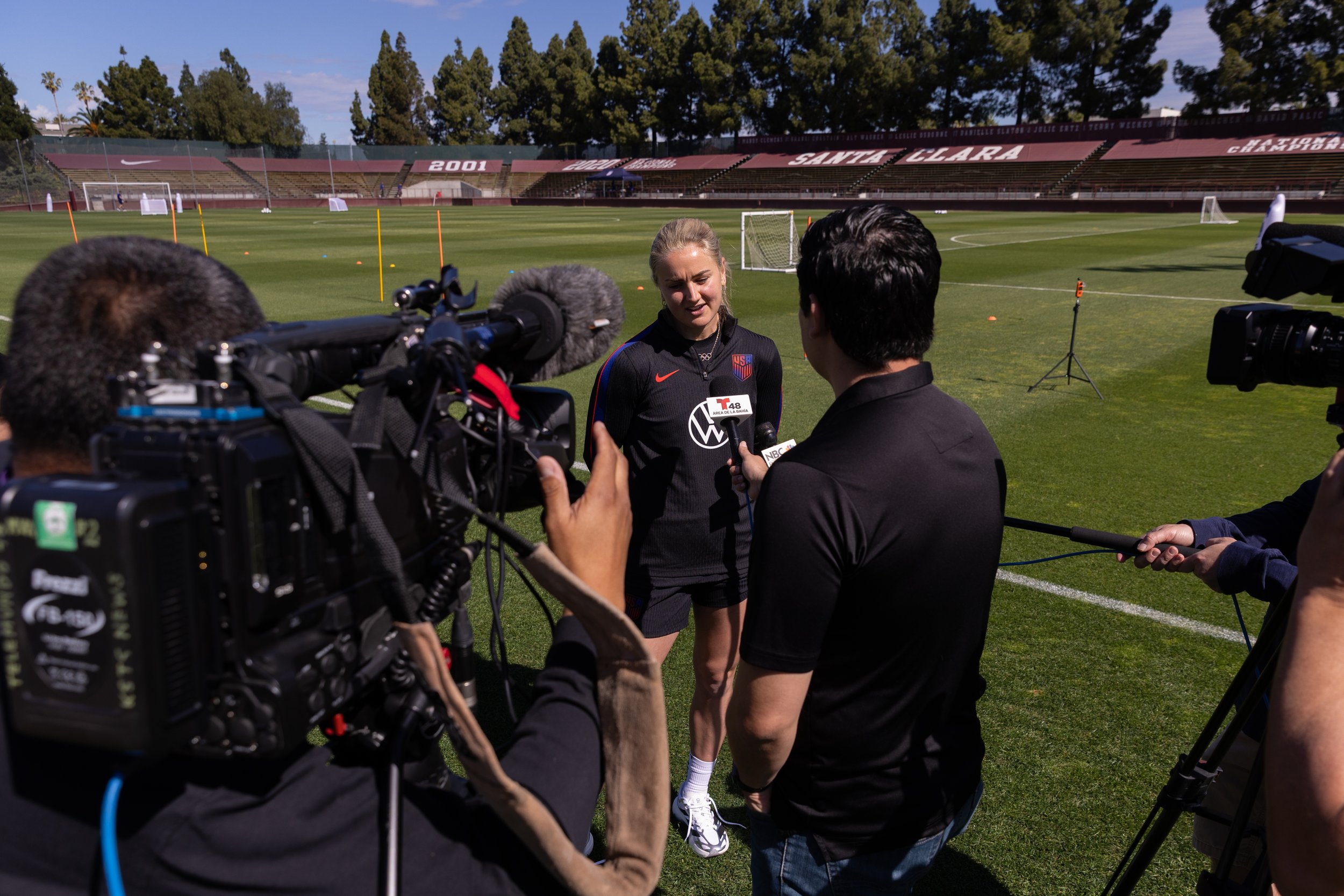“It’s really cool. These are players that we look up to,” said Kennedy Schoennauer ’27, a defender on the Santa Clara women’s soccer team. “Obviously, the fact that they’re playing on the field that we get to play on is pretty cool.”