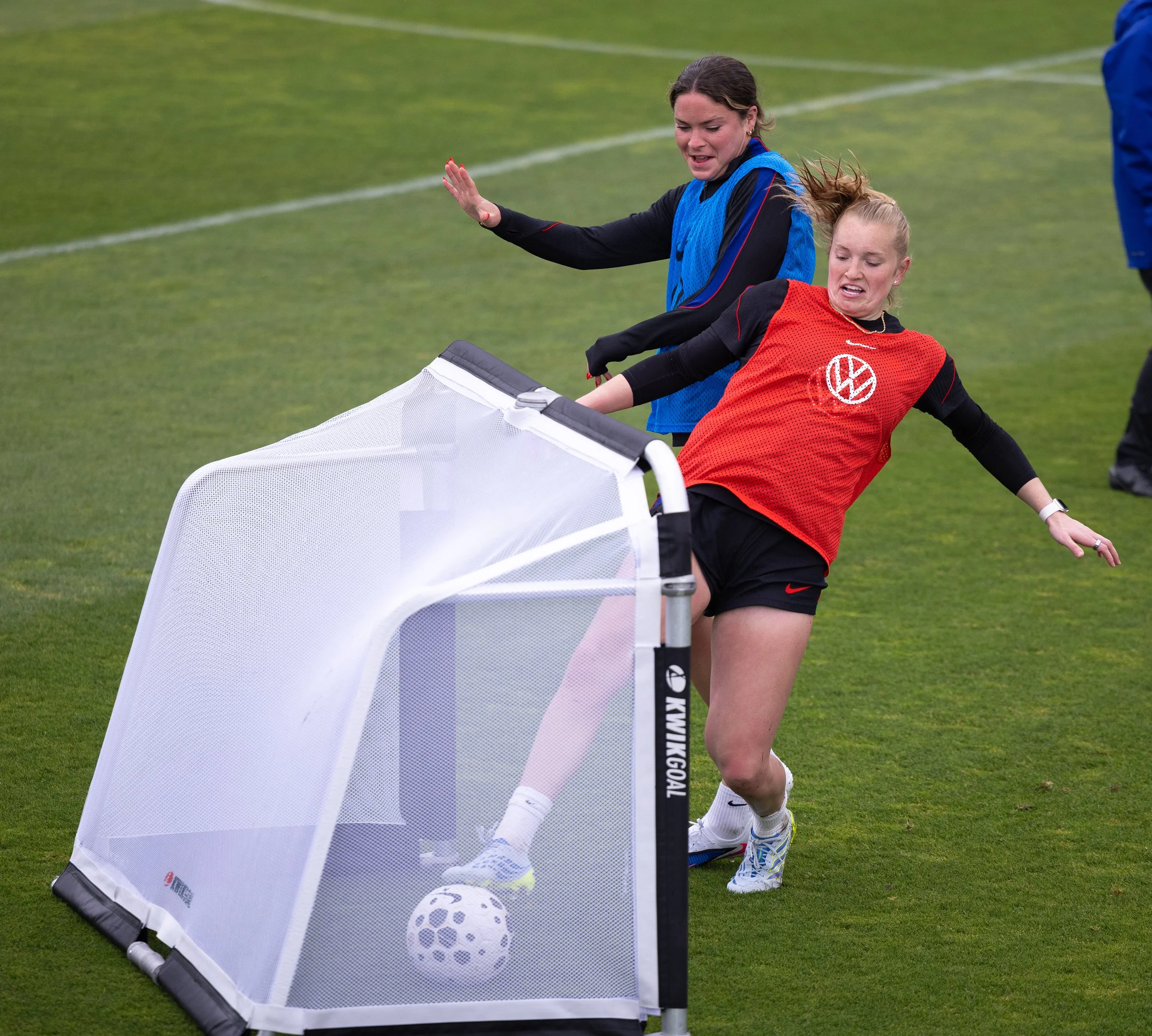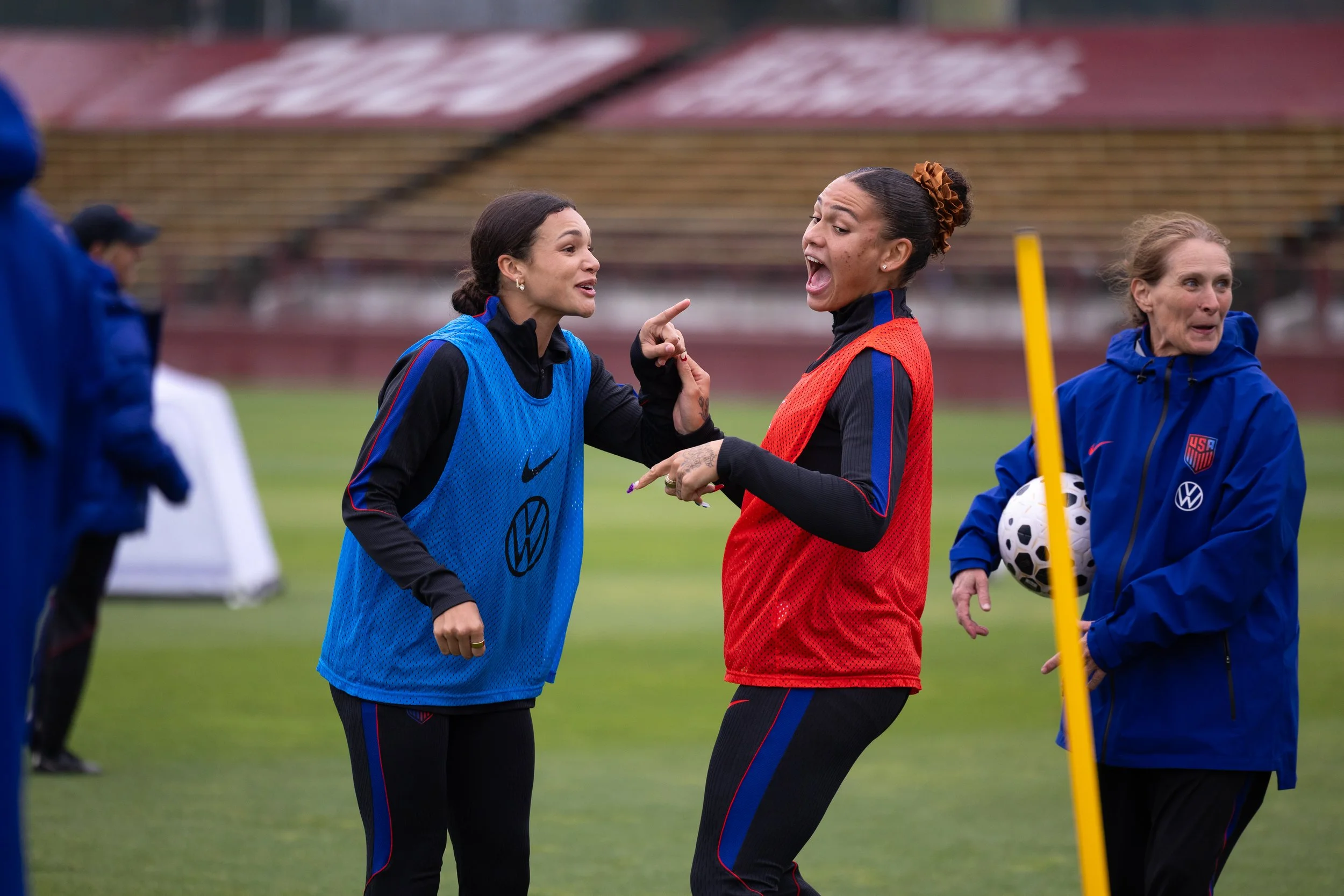 Sophia Wilson and Trinity Rodman during USWNT practice at Buck Shaw Field at Santa Clara University on Friday, April 10, 2026. (Nina Glick/The Santa Clara)