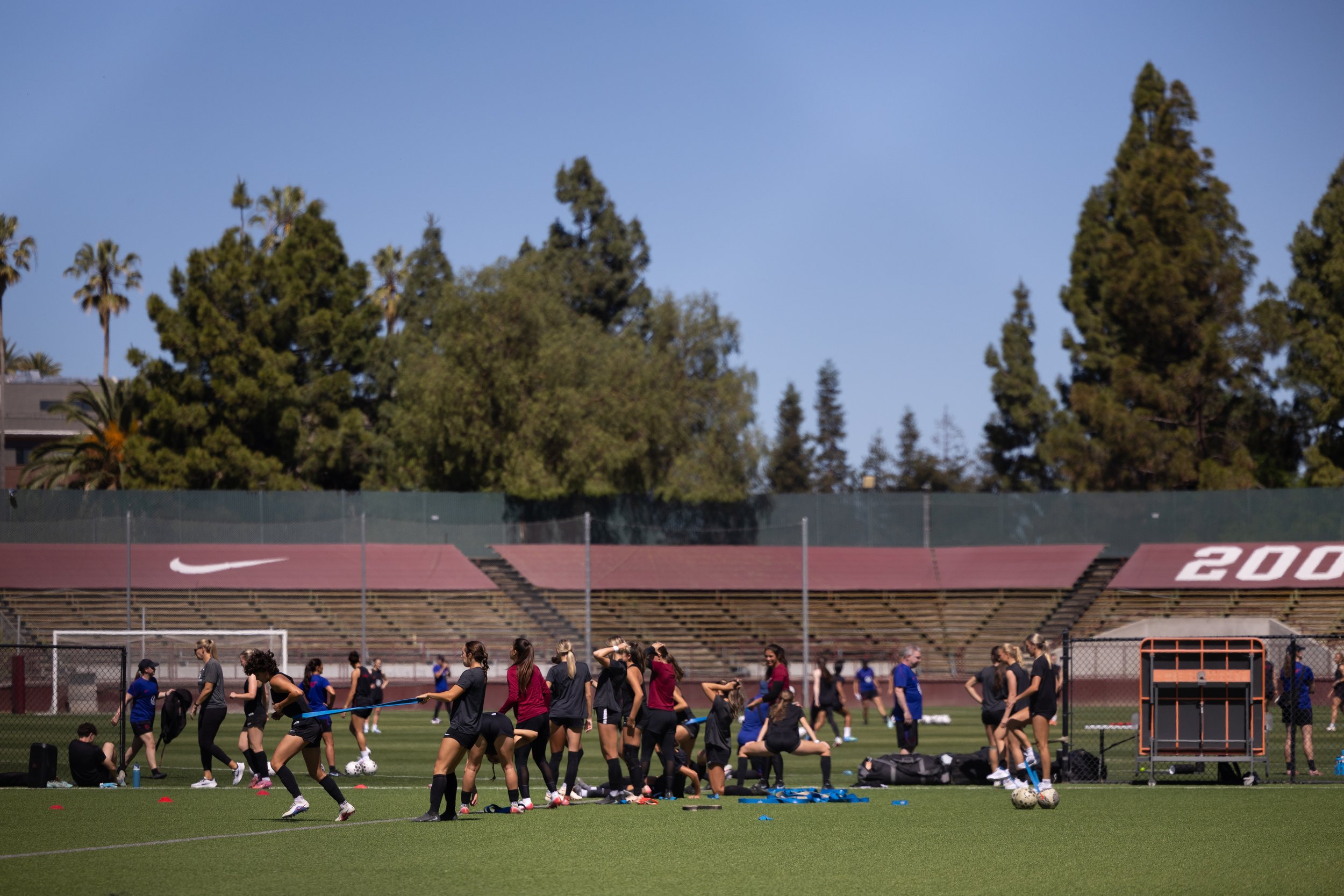 Santa Clara women’s soccer begins their practice on the field next to the U.S. women’s national team. (Nina Glick/The Santa Clara)