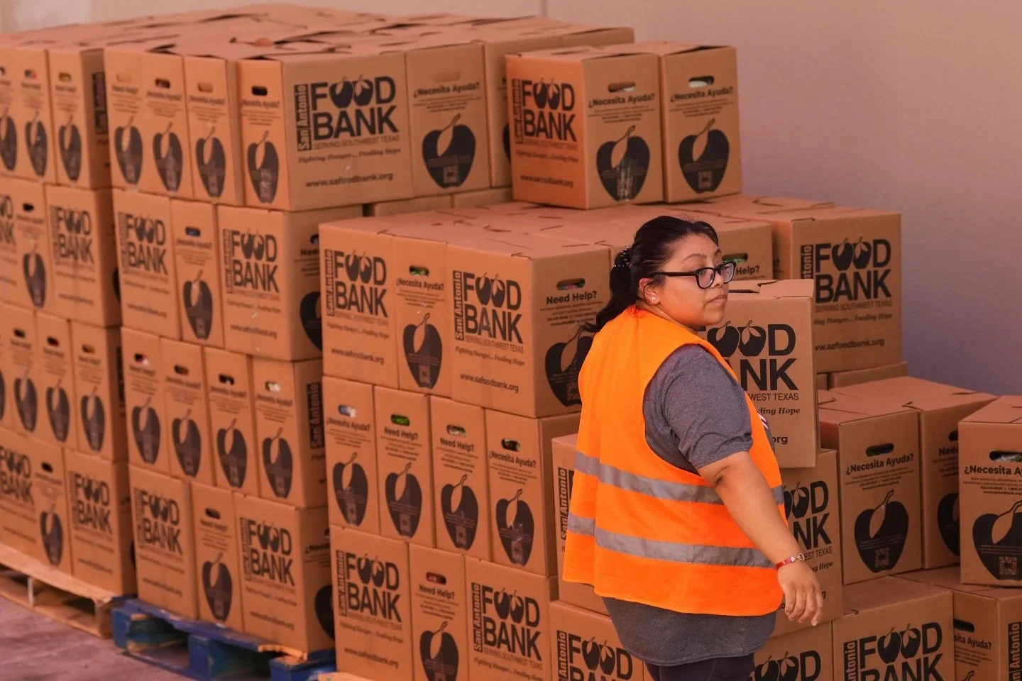 A volenteer helps load boxes of food for federal employee households and SNAP recipients impacted by the governemnt shutdown on Oct. 27, in San Antonio. (AP Photo/Eric Gay)
