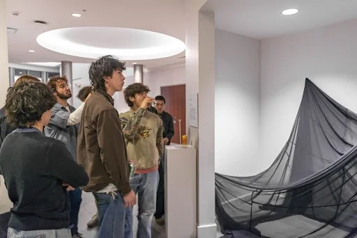 While it’s now carefully draped with translucent fabric, the miniature gallery housing the installation previously accommodated a vending machine. The transition of the space is part of the Santa Clara Art and Art History Department’s push to display student work.